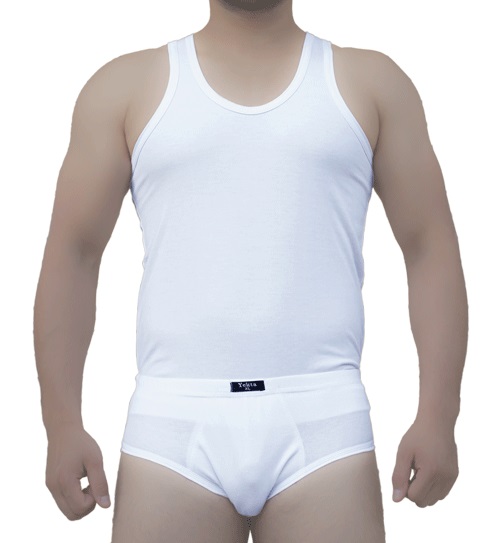 ست زیرپوش رکابی و شورت اسلیپ سفید پلی استر پنبه